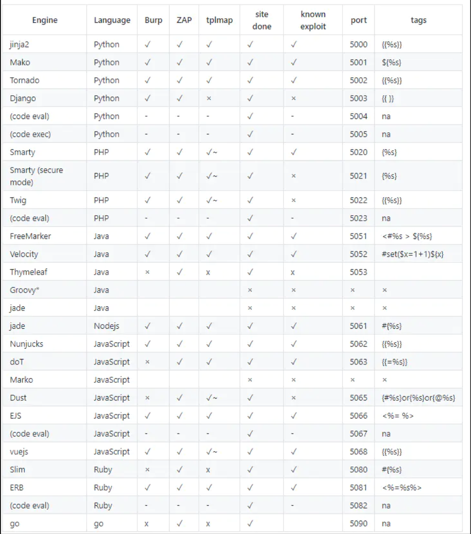 这里贴一张图,展示了常见语言的常见模板框架,以及其基本语法格式: