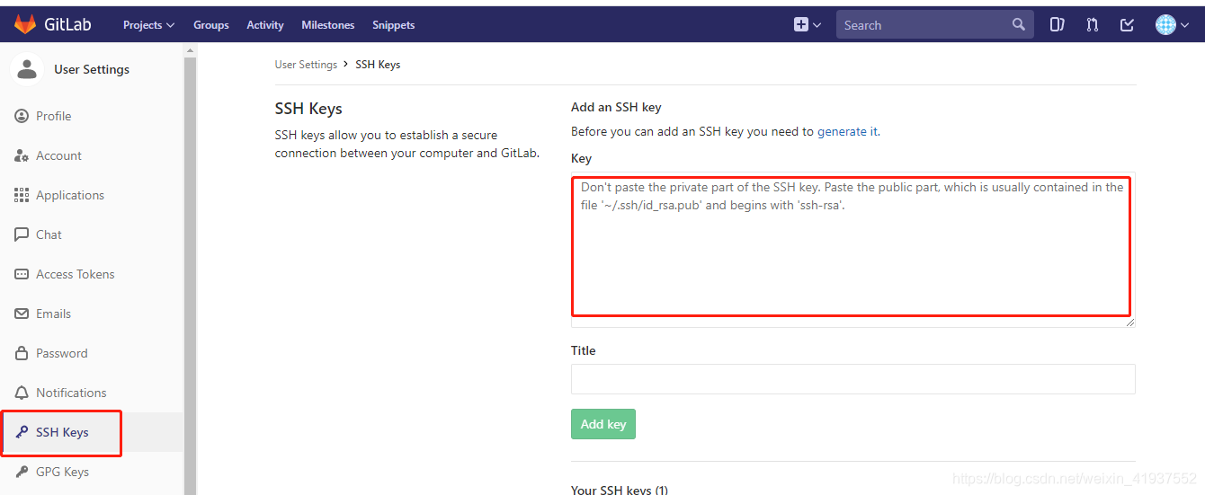 另外,手动添加的办法,从C盘检索id_rsa.pub(我已经把他改成sunmenglei.pub)文件,使用notepad++打开这个id_rsa.pub文件,把内容复制到ssh key即可。