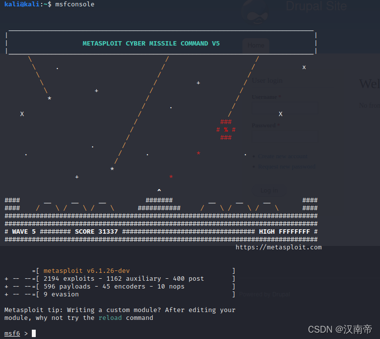 在kali输入msfconsole,进入msf框架