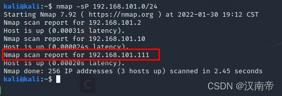 主机探测: nmap -sP 192.168.101.0/24