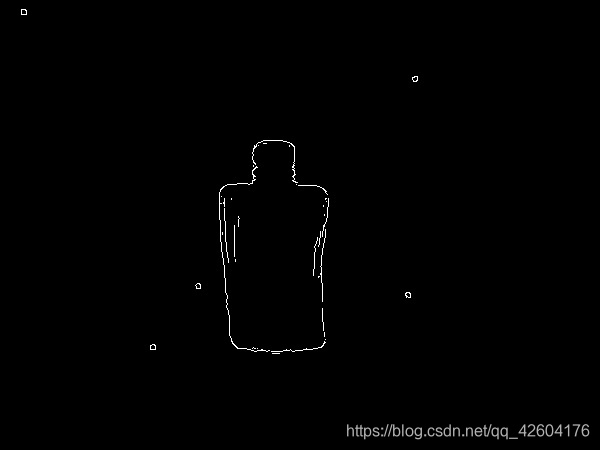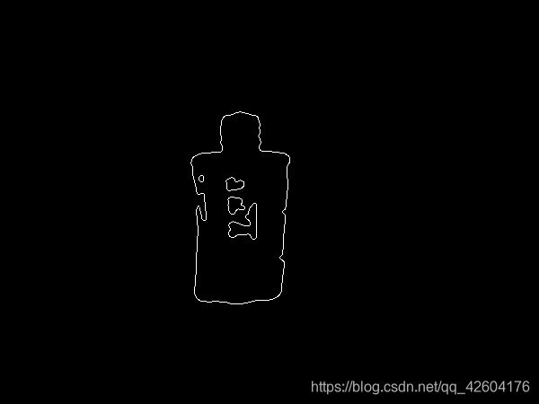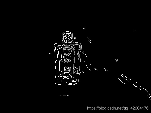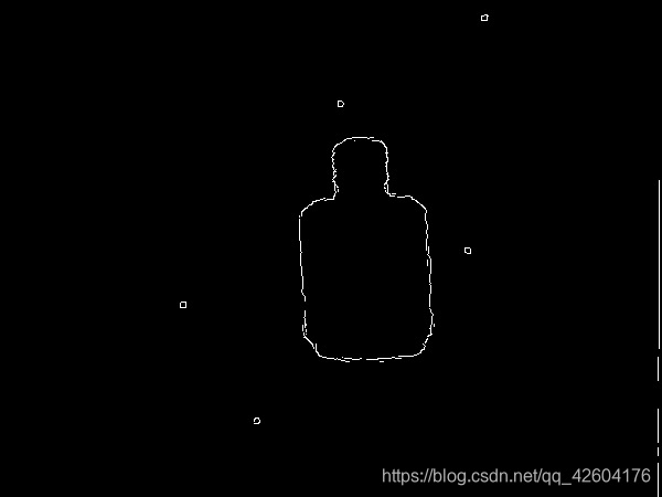 思路2:先二值化,然后进行闭操作,然后canny,得到的轮廓确实比之前少很多,但是有个缺点:瓶子的边缘由于二值化的影响失真了。