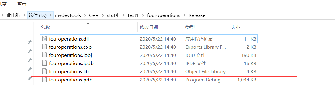 头文件 fouroperations.h 与 fouroperations.lib 与 fouroperations.dll