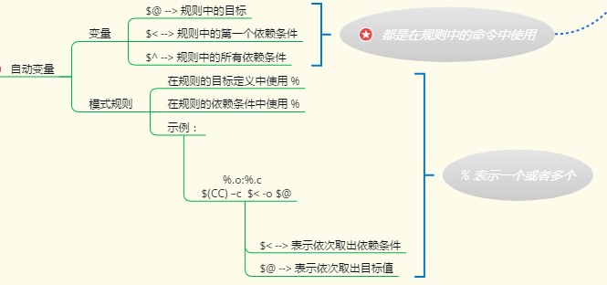 $<: 规则中的第一个依赖 $@: 规则中的目标 $^: 规则中的所有依赖