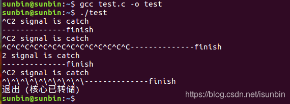 {printf("%d signal is catch\n", signo);sleep(10);printf("--------------finish\n");