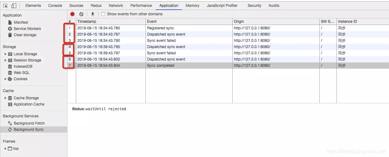 可以通过 DevTools 里的 Background Services 查看 Sync 的执行过程: