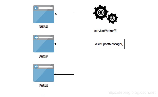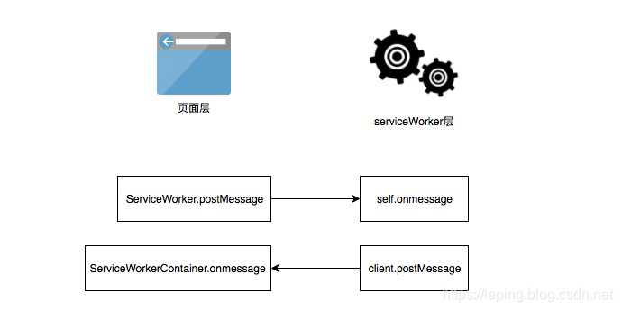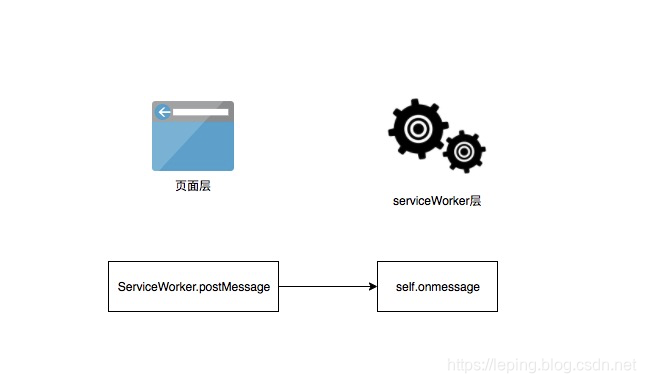 页面层可以通过 ServiceWorker 接口的 postMessage 来实现页面到 serviceWorker 环境的通讯。
