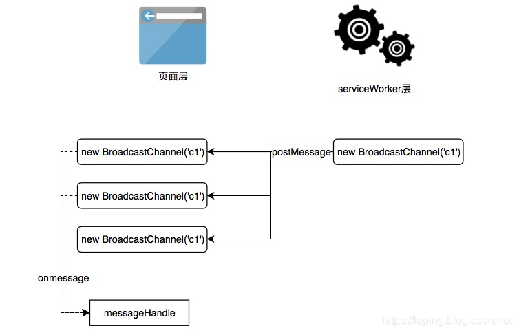 // 页面层var bc1 = new BroadcastChannel('c1');bc1.onmessage = e => {// 页面层收到广播,逻辑处理
