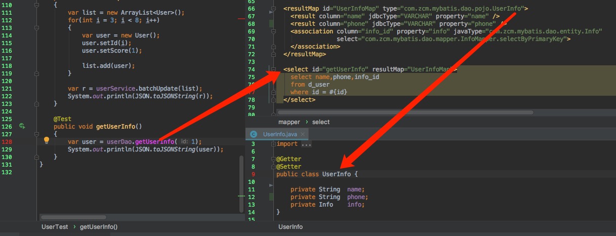 2019-06-26 10:50:00.800 DEBUG 95032 --- [ main] com.zcm.mybatis.dao.UserDao.getUserInfo : ==> Preparing: select name,phone,info_id from d_user where id = ?