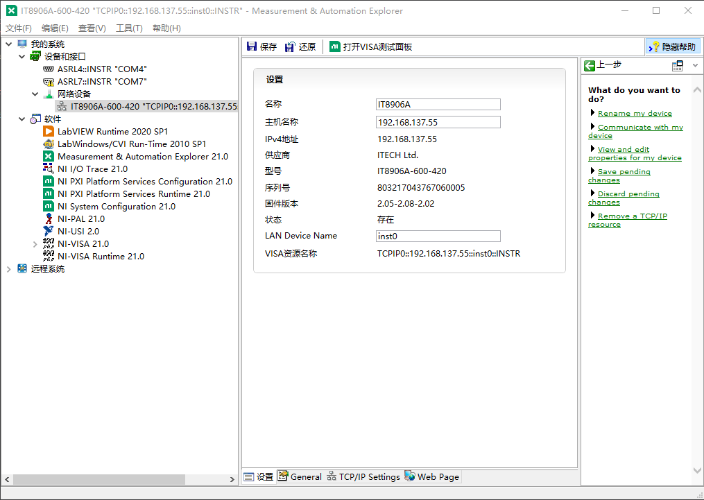 记住此时的VISA资源名称,在QT通信时,需要用到,作为设备的访问ID。