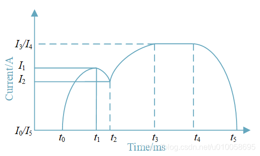 因此,线圈电流的参数包括四个电流数据I1,I2,I3,I4和五个时间参数t1,t2,t3,t4,t5,总计9个特征参数