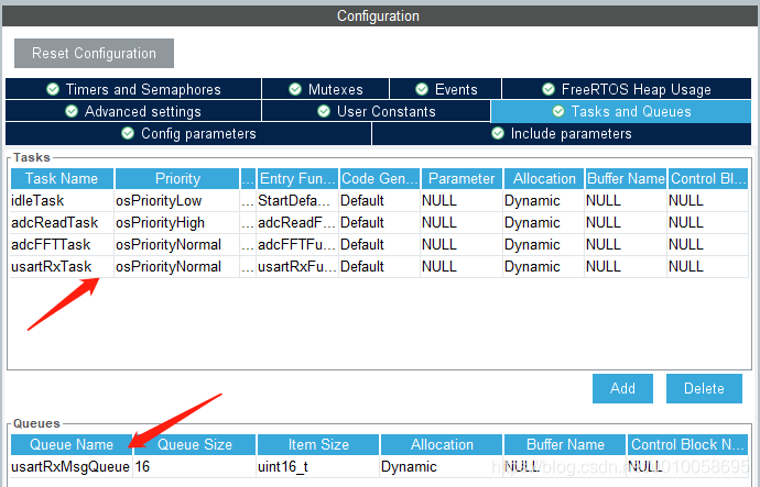 2.2 FreeRTOS创建UsartRx 任务,创建消息队列Queue,生成代码。