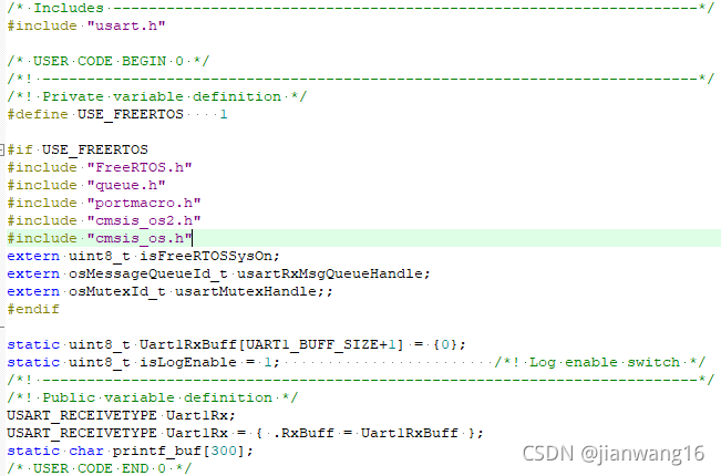 1、使用队列添加引用:#include "queue.h"2、初始化:osMessageQueueId_t usartRxMsgQueueHandle;