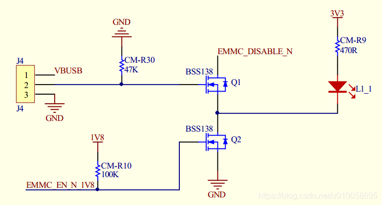 意思很明显了,CM3启动的时候要去FAT文件系统找bootcode.bin,找不到就等待USB接口接收该文件。当前EMMC没有系统,所以不使能EMMC。具体需要将EMMC_DISABLE_N管脚接地。对应下图则将J4的跳线帽接到GND。