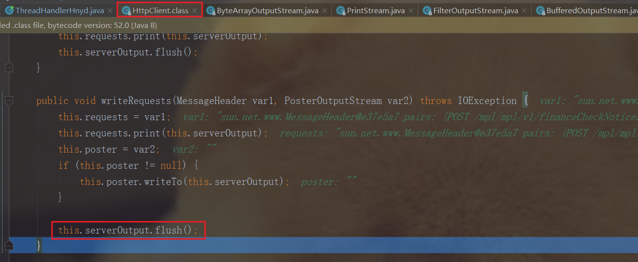 此时调用 conn.getResponseCode() 会向服务器写入其他的东西(一个8192byte的字符串),