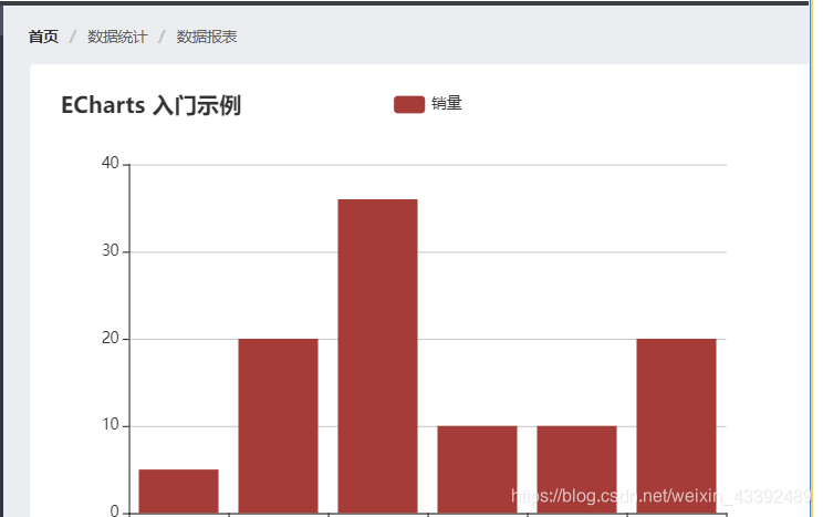 <template><div><!-- 面包屑导航区域 --><el-breadcrumb separator="/"><el-breadcrumb-item :to="{ path: '/home' }">首页</el-breadcrumb-item><el-breadcrumb-item>数据统计</el-breadcrumb-item><el-breadcrumb-item>数据报表</el-breadcrumb-item></el-breadcrumb><!-- 卡片视图 --><el-card><!-- 2.为ECharts准备一个具备大小(宽高)的Dom --><div id="main" style="width: 600px;height:400px;"></div></el-card></div>