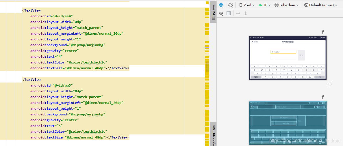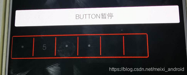 <RelativeLayoutandroid:layout_width="@dimen/normal_605dp"android:layout_height="@dimen/normal_100dp"android:layout_marginTop="@dimen/normal_550dp"><LinearLayoutandroid:layout_width="@dimen/normal_605dp"android:layout_height="@dimen/normal_100dp"android:background="@drawable/bg_ed_5dp"android:gravity="center_vertical"><TextViewandroid:id="@+id/ed1"android:layout_width="@dimen/normal_100dp"android:layout_height="@dimen/normal_100dp"android:gravity="center"android:inputType="textPassword"android:textColor="@color/color_333"android:textSize="@dimen/normal_32dp" /><Viewandroid:layout_width="@dimen/normal_1dp"android:layout_height="@dimen/normal_80dp"android:background="@color/color_EF611E"/><TextViewandroid:id="@+id/ed2"android:layout_width="@dimen/normal_100dp"android:layout_height="@dimen/normal_100dp"android:textSize="@dimen/normal_32dp"android:textColor="@color/color_333"android:gravity="center"/><Viewandroid:layout_width="@dimen/normal_1dp"android:layout_height="@dimen/normal_80dp"android:background="@color/color_EF611E"/><TextViewandroid:id="@+id/ed3"android:layout_width="@dimen/normal_100dp"android:layout_height="@dimen/normal_100dp"android:textSize="@dimen/normal_32dp"android:textColor="@color/color_333"android:inputType="textPassword"android:gravity="center"/><Viewandroid:layout_width="@dimen/normal_1dp"android:layout_height="@dimen/normal_80dp"android:background="@color/color_EF611E"/><TextViewandroid:id="@+id/ed4"android:layout_width="@dimen/normal_100dp"android:layout_height="@dimen/normal_100dp"android:textSize="@dimen/normal_32dp"android:textColor="@color/color_333"android:inputType="textPassword"android:gravity="center"/><Viewandroid:layout_width="@dimen/normal_1dp"android:layout_height="@dimen/normal_80dp"android:background="@color/color_EF611E"/><TextViewandroid:id="@+id/ed5"android:layout_width="@dimen/normal_100dp"android:layout_height="@dimen/normal_100dp"android:textSize="@dimen/normal_32dp"android:textColor="@color/color_333"android:inputType="textPassword"android:gravity="center"/><Viewandroid:layout_width="@dimen/normal_1dp"android:layout_height="@dimen/normal_80dp"android:background="@color/color_EF611E"/><TextViewandroid:id="@+id/ed6"android:layout_width="@dimen/normal_100dp"android:layout_height="@dimen/normal_100dp"android:textSize="@dimen/normal_32dp"android:textColor="@color/color_333"android:inputType="textPassword"android:gravity="center"/></LinearLayout><EditTextandroid:id="@+id/edEnter"android:layout_width="match_parent"android:layout_height="match_parent"android:background="@color/transparent"android:textColor="@color/transparent"android:inputType="numberPassword"android:cursorVisible="false"android:maxLength="6"/></RelativeLayout>