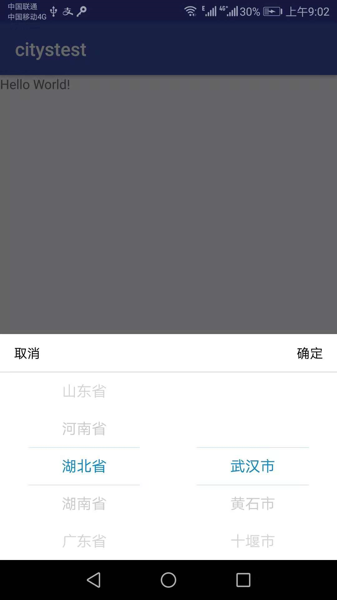 // picker.setSelectedItem(selectedProvince, selectedCity, selectedCounty);//隐藏区picker.setOnAddressPickListener(callback);picker.show();}} else {callback.onAddressInitFailed();}}public interface Callback extends AddressPicker.OnAddressPickListener {void onAddressInitFailed();}}