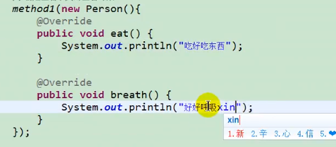 System.out.println("人 新的吃饭");