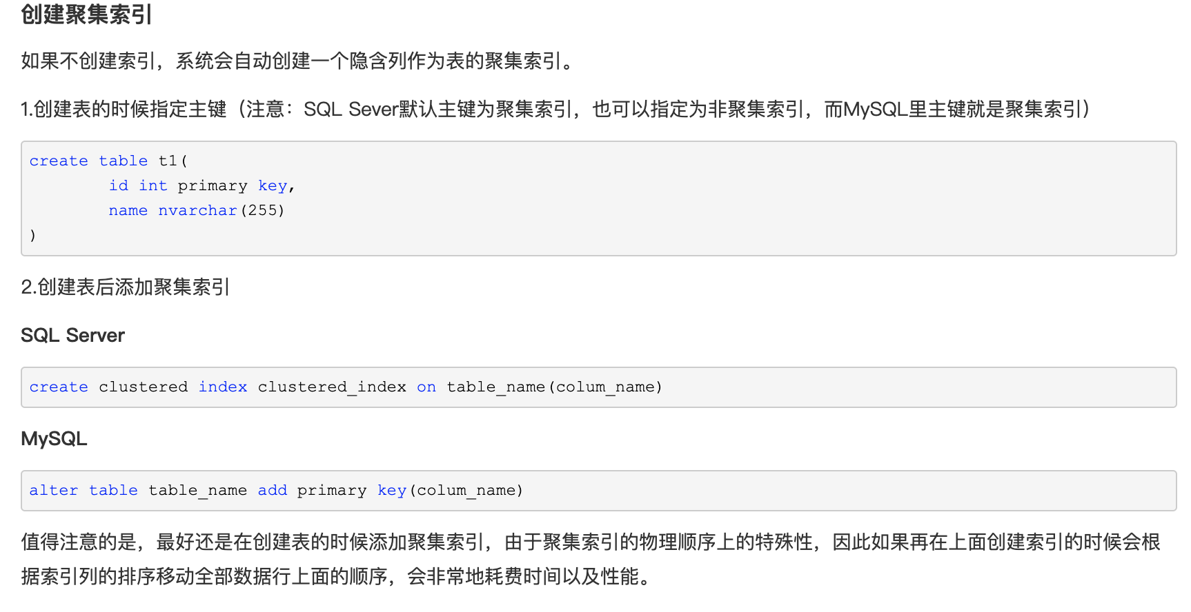 - 非聚集索引在查询的时候可以的话就避免二次查询,这样性能会大幅提升。