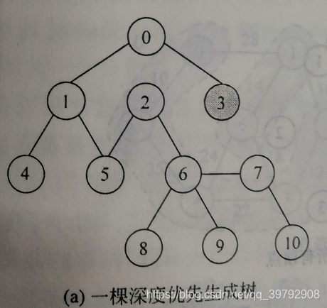 int visited[MAX] = { 0 }; void DFS(AdjGraph* G, int v) //深度优先遍历 { ArcNode*p; visited[v] = 1; //置已访问标记 //cout << v << endl; //输出被访问顶点的编号 p = G->adjlist[v].firstarc; //p指向顶点v的第一个邻接点 while (p != NULL) { if (visited[p->adjvex] == 0) { cout << "(" << v << "," << p->adjvex << ")" << endl; DFS(G, p->adjvex); } p = p->nextarc; //p指向顶点v的下一个邻接点 } }