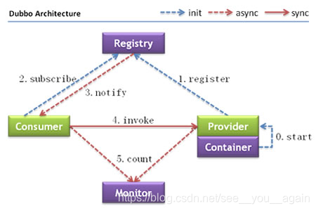 Dubbo架构简单来说其实是生产者-消费者模型。进一步在这种模型上,加上了注册中心和监控中心,用于管理提供方提供的url,以及管理整个过程。