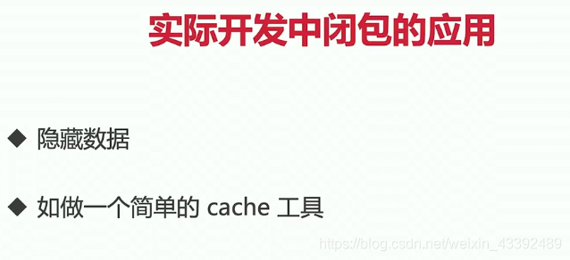 function createCache() {const data = {} //闭包中的数据 被访问 不被外界访问return {set: function(key, val) {data[key] = val},get: function(key) {return data[key];}}