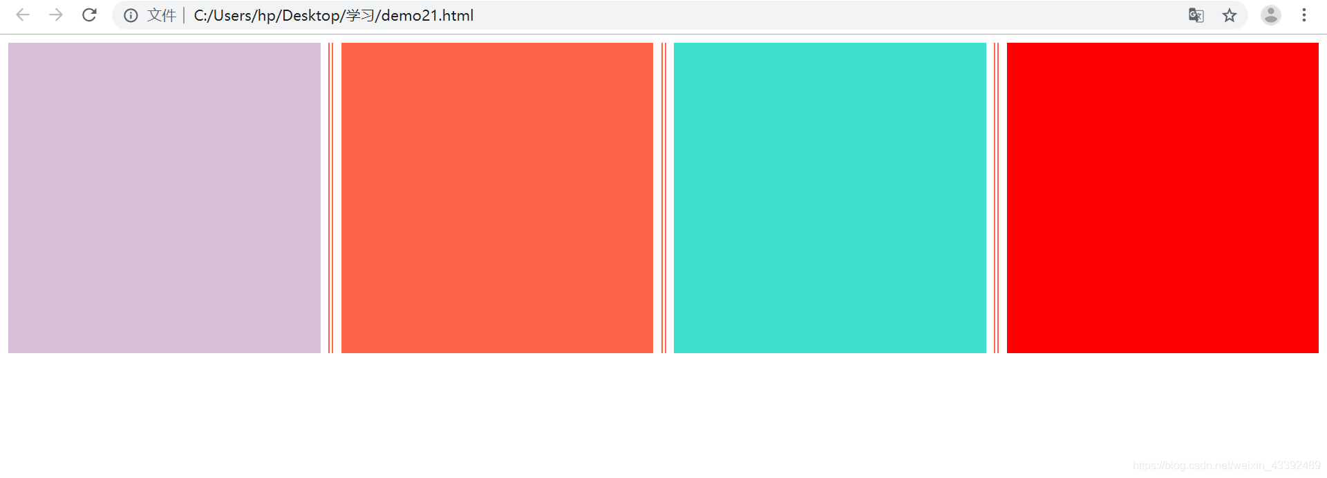 <head><meta charset="UTF-8"><meta name="viewport" content="width=device-width, initial-scale=1.0"><title>css多列布局</title><style>.parent{column-count: 4;column-width: 300px;column-gap: 20px;column-rule: 5px tomato double;}.col1,.col2,.col3,.col4{height: 300px;}.col1{background-color: thistle;}.col2{background-color: tomato;}.col3{background-color: turquoise;}.col4{background-color: red}</style>