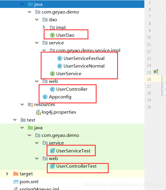 @ContextConfiguration(classes = Appconfig.class)public class UserServiceTest {//@Autowired//@Qualifier("")@Resource(name="userServiceFestival")private UserService userService;@Testpublic void testAdd(){userService.add();}