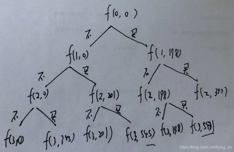 递归树中的每个节点是一个状态,用(i,preSum)表示。i表示将要处理第i个商品。preSum表示当前状态下已经购买商品的价格和。可以看到这里的状态表示的参数基本和f函数的参数是相同的。