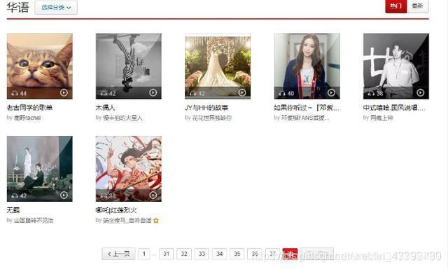 这样我们就可以获得38页每页35篇歌单,共1300+篇歌单。