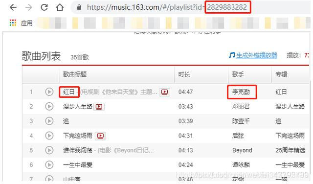 点开一篇歌单,注意红色圈出的id。