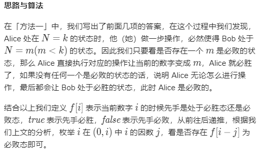 转载链接:https://leetcode-cn.com/problems/divisor-game/solution/chu-shu-bo-yi-by-leetcode-solution/