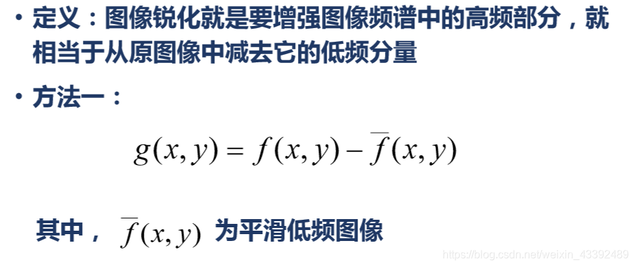 •图像锐化则通过微分而使图像边缘突出、清晰。