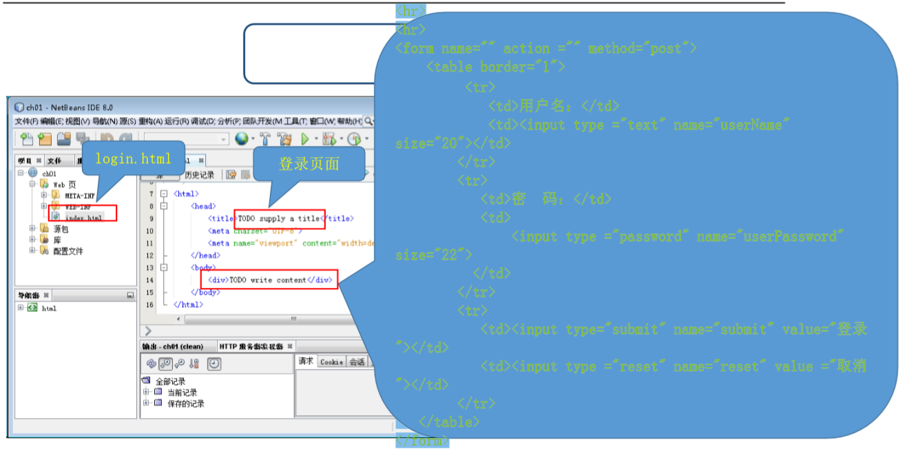 <tr> <td>用户名:</td> <td><input type ="text" name="userName" size="20"></td>