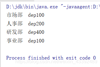import java.util.TreeMap;public class test69 {public static void main(String[] args){TreeMap depTree;depTree = new TreeMap(new Comparator() {@Overridepublic int compare(Objectk1, Objectk2) {Integer intk1 = (Integer) k1;Integer intk2 = (Integer) k2;if (intk1.intValue() > intk2.intValue()) {return -1;} else if (intk1.intValue() < intk2.intValue())return 1;return 0;}});Department dep0=new Department();dep0.setCode("dep400");dep0.setName("研发部");dep0.setQuanity(50);Department dep1=new Department();dep1.setCode("dep200");dep1.setName("人事部");dep1.setQuanity(30);Department dep2=new Department();dep2.setCode("dep100");dep2.setName("事业部");dep2.setQuanity(20);Department dep3=new Department();dep3.setCode("dep100");dep3.setName("市场部");dep3.setQuanity(100);//存储数据depTree.put(new Integer(100),dep3);depTree.put(new Integer(50),dep0);depTree.put(new Integer(80),dep1);depTree.put(new Integer(10),dep2);Collection coll=depTree.values();for(Object o:coll){Department depTemp=(Department)o;System.out.println(depTemp.getName()+"\t"+depTemp.getCode());}}