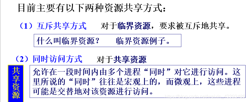 共享是指系统中的资源可供内存中多个并发执行的进程(线程)共同使用