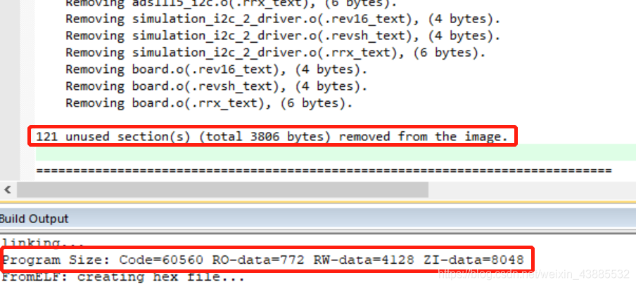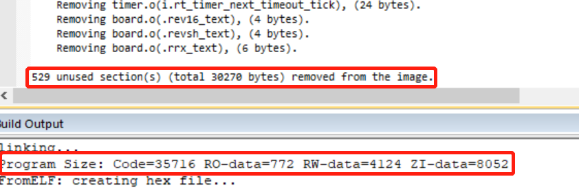 该部分描述了被MDK编译器优化掉的在链接过程中链接器发现的并未在工程中被引用的段或函数。这里需要注意的是,这部分并非在.o文件中被删除的,而是在链接器将这些.o文件链接生成.axf文件的过程中忽略掉这些无用部分,只将有用到的部分添加进.axf文件,如此可以有效的减少代码占用空间大小。