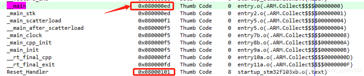 映像中的入口点Image Entry point是程序开始执行的地方,为_main函数起始的地方,而不是Reset_Handler。