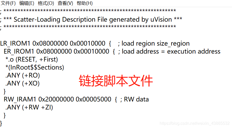执行域是芯片上电后开始执行代码的时候的运行状态,Execution Region ER_IROM1 (Exec base: 0x08000000, Load base: 0x08000000, Size: 0x0000ef94, Max: 0x00010000, ABSOLUTE)中的Base表示执行域从0x08000000处开始,Size表示执行域空间大小为0x0000ef94 Bytes,Max表示芯片最大的ROM空间为0x00010000。