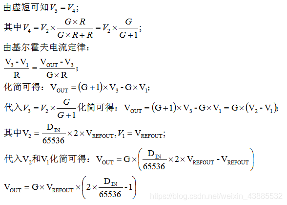 对以上设计示例中的公式进行推导,涉及到运算放大器计算中的虚短、虚断。