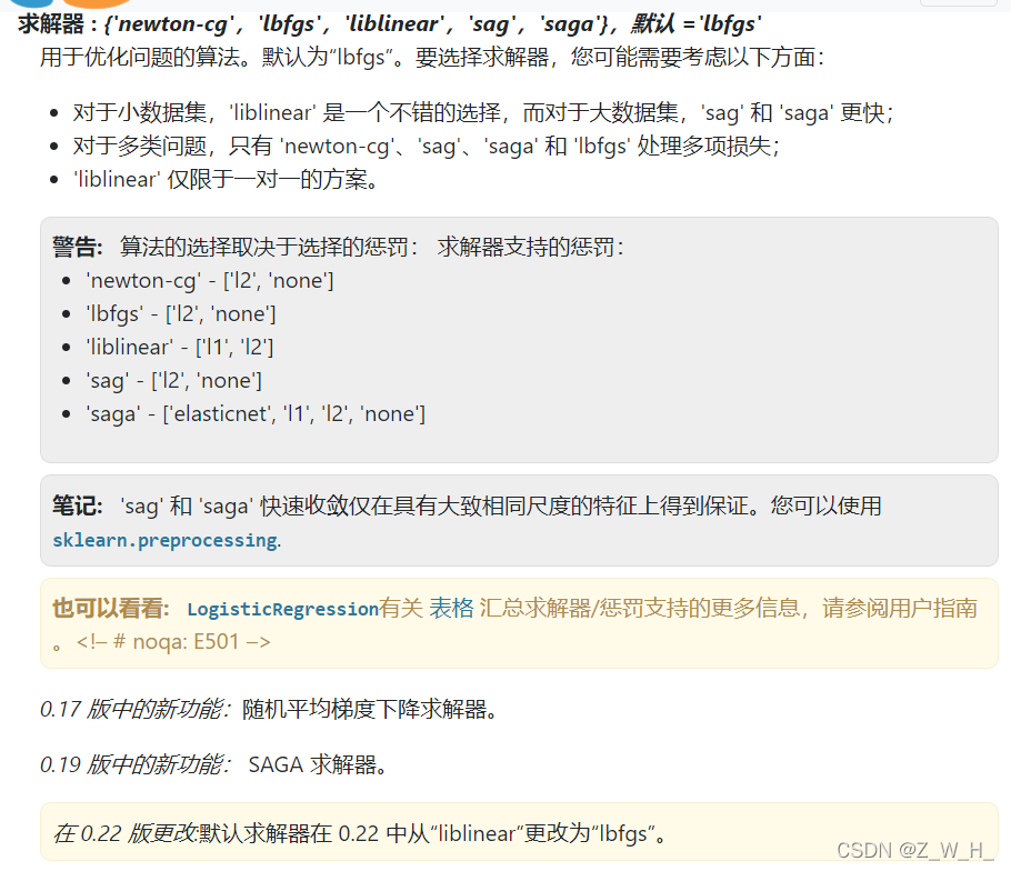 如何理解SAG,SVRG,SAGA三种优化算法 - 知乎最近在看Leon Bottou的大规模机器学习中的优化算法,发现里面有一些算法不太好理解,所以自己找了一些文章看了看,决定把SAG,SVRG,SAGA三种算法介绍一下。 对于这三种方法,我们主要目的是希望达到线性收敛的结果… https://zhuanlan.zhihu.com/p/51184012参数中与求解器(solver)相关的有
