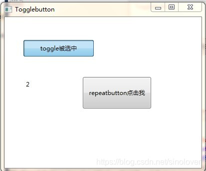下面我们来结合这两个按钮来做一个DEMO,当ToggleButton处于选中 状态时,点击RepeateButton,进行数字递增操作,当ToggleButton处于未选择状态时,进行数字递减操作.