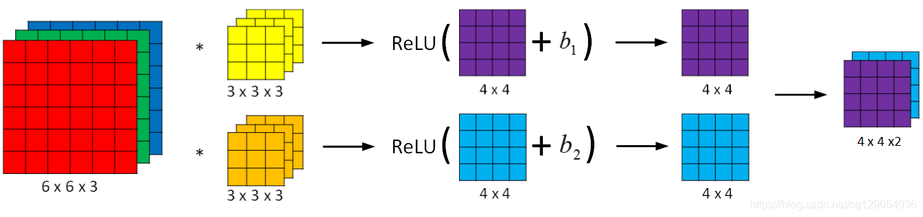 与之前的卷积过程相比较,卷积神经网络的单层结构多了激活函数和偏移量,计算过程如下: