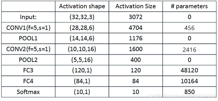 图中的 FC3 和 FC4 为全连接层,与标准的神经网络结构一致。整个神经网络各层的尺寸与参数如下表所示: