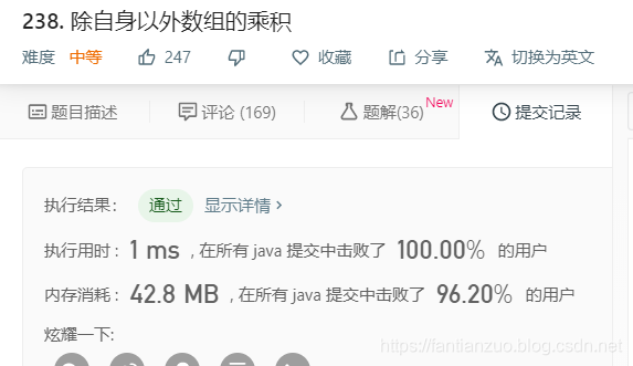 说明: 请不要使用除法,且在 O(n) 时间复杂度内完成此题。