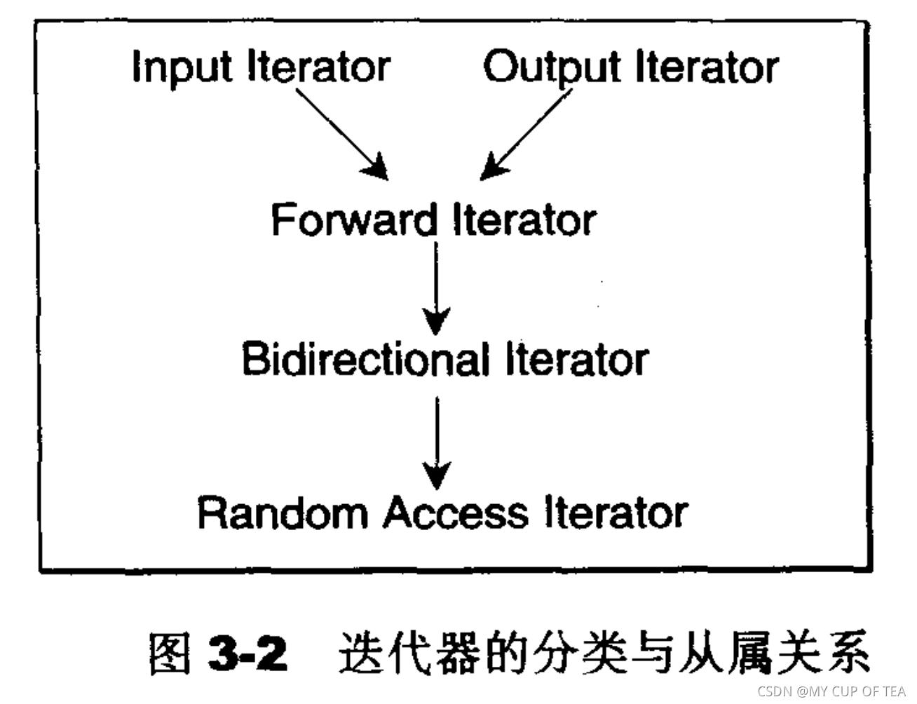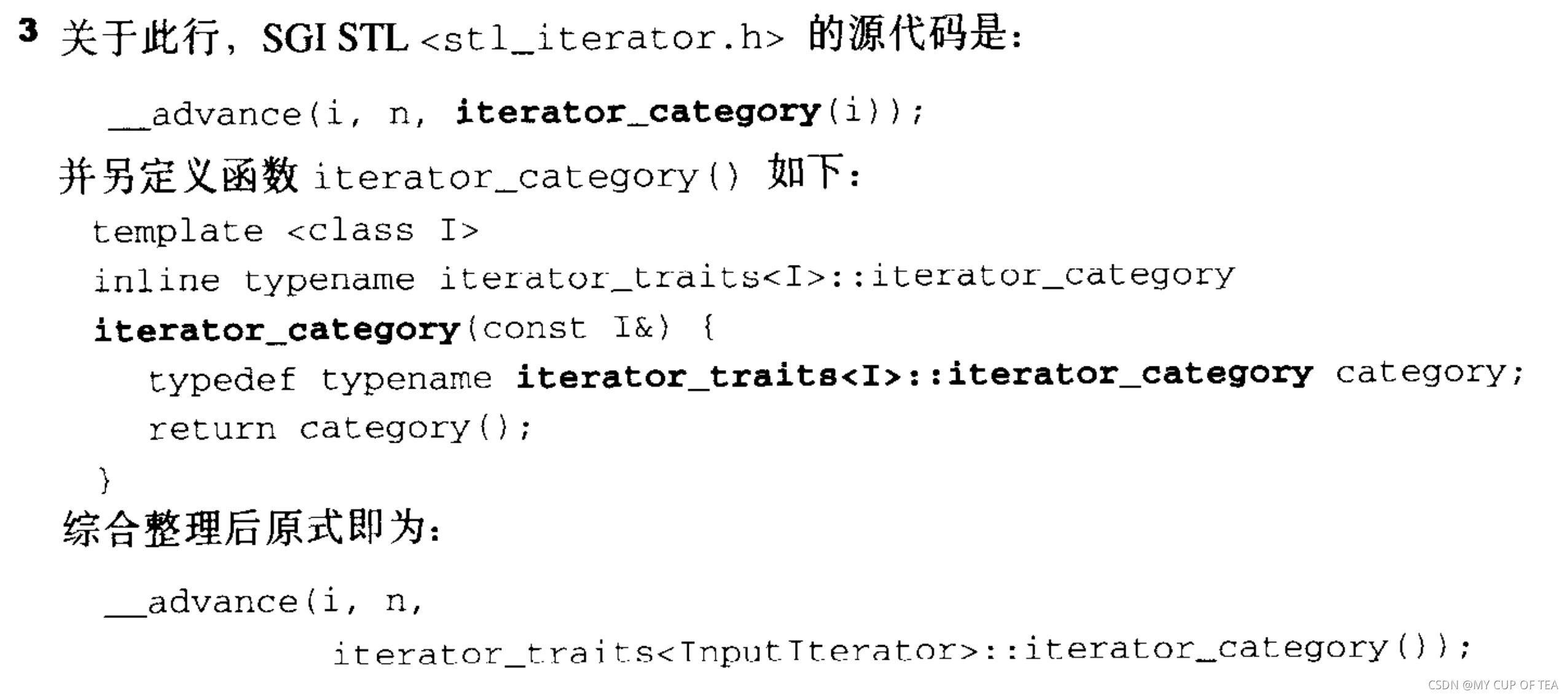 - 但是迭代器的参数需要按照最低阶的类型为其命名,比如advance()函数,使用最低级的inputIterator为其命名