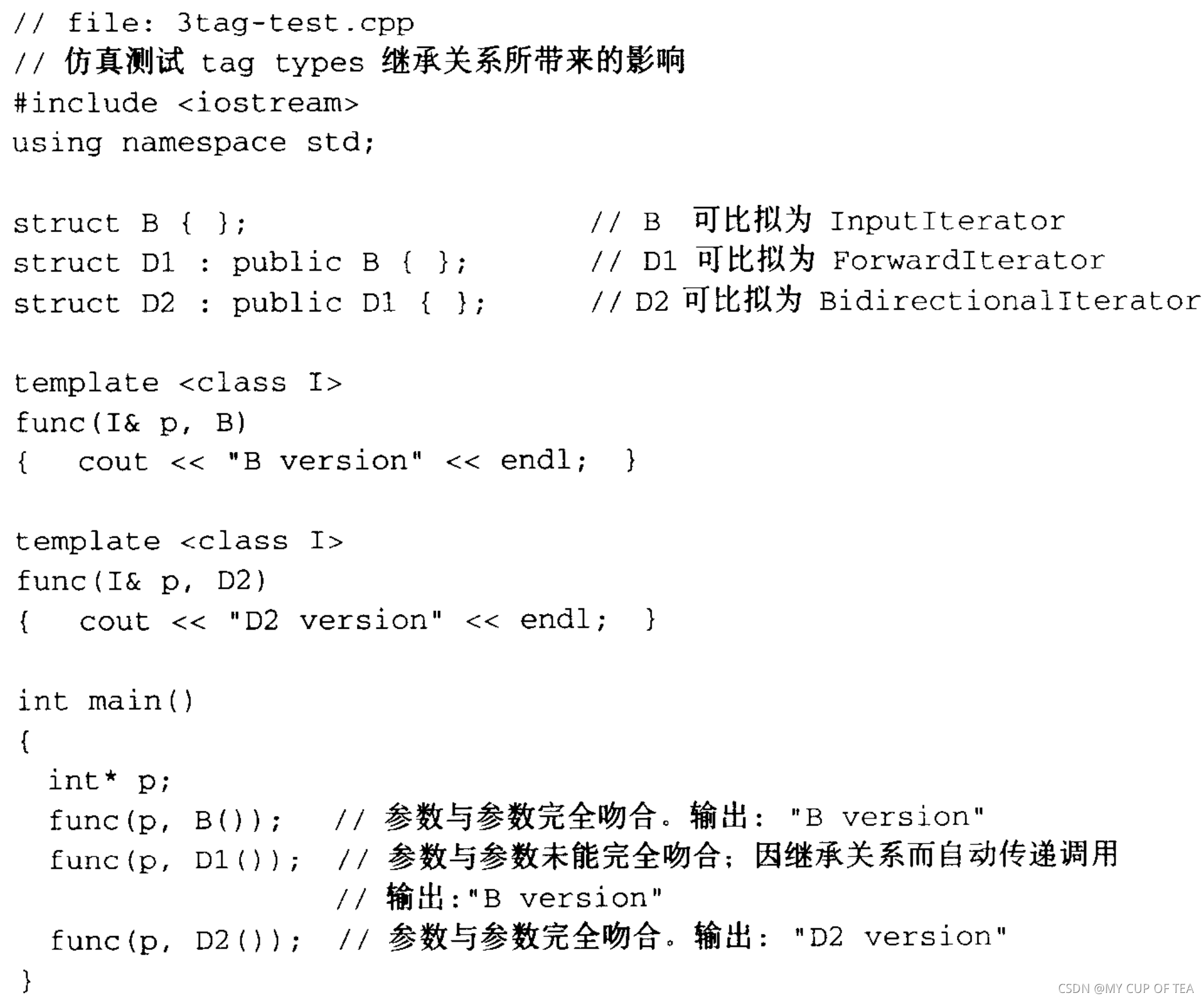 - 使用class定义迭代器的各种分类标签,不仅可以促进重载机制的成功运作,使得编译器得以正确执行重载决议,overloaded resolution