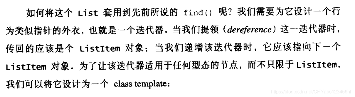 - pointers和 references在 C + + 中有非常密切的关联。如 果 “传回一个左值, 令它代表P 所指之物”是可能的,那 么 “传回一个左值,令它代表P 所指之物的地址”也一定可以。也就是说,我们能够传回一个pointer,指向迭代器所指之物。