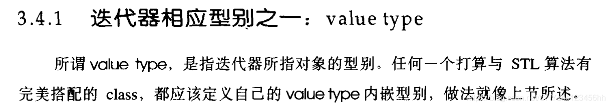- 迭代器所指对象的型别,称为该迭代器的value iy p e .上述的参数型别推导 技巧虽然可用于value ty p e ,却非全面可用:万一 value typ e 必须用于函数的传 回值,就束手无策了,毕竟函数的*"template参数推导机制”推而导之的只是参数,无法推导函数的回返值型别。