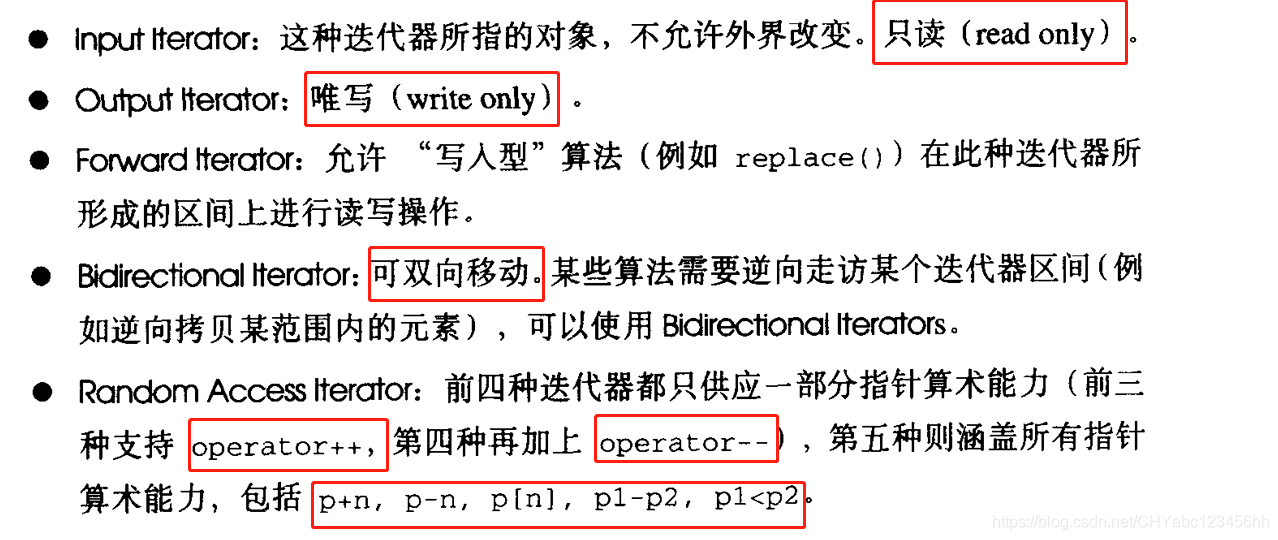 - 最后一个(第五个)迭代器的相应型别会引发较大规模的写代码工程。在那之前,我必须先讨论迭代器的分类